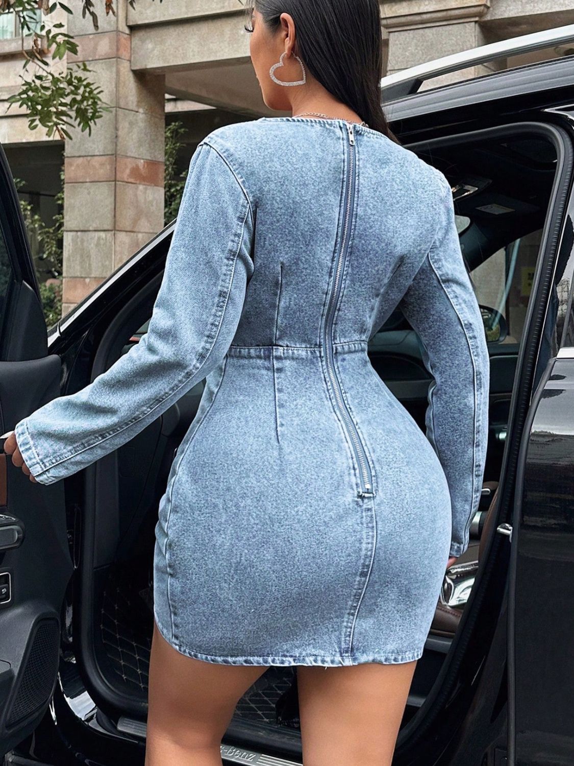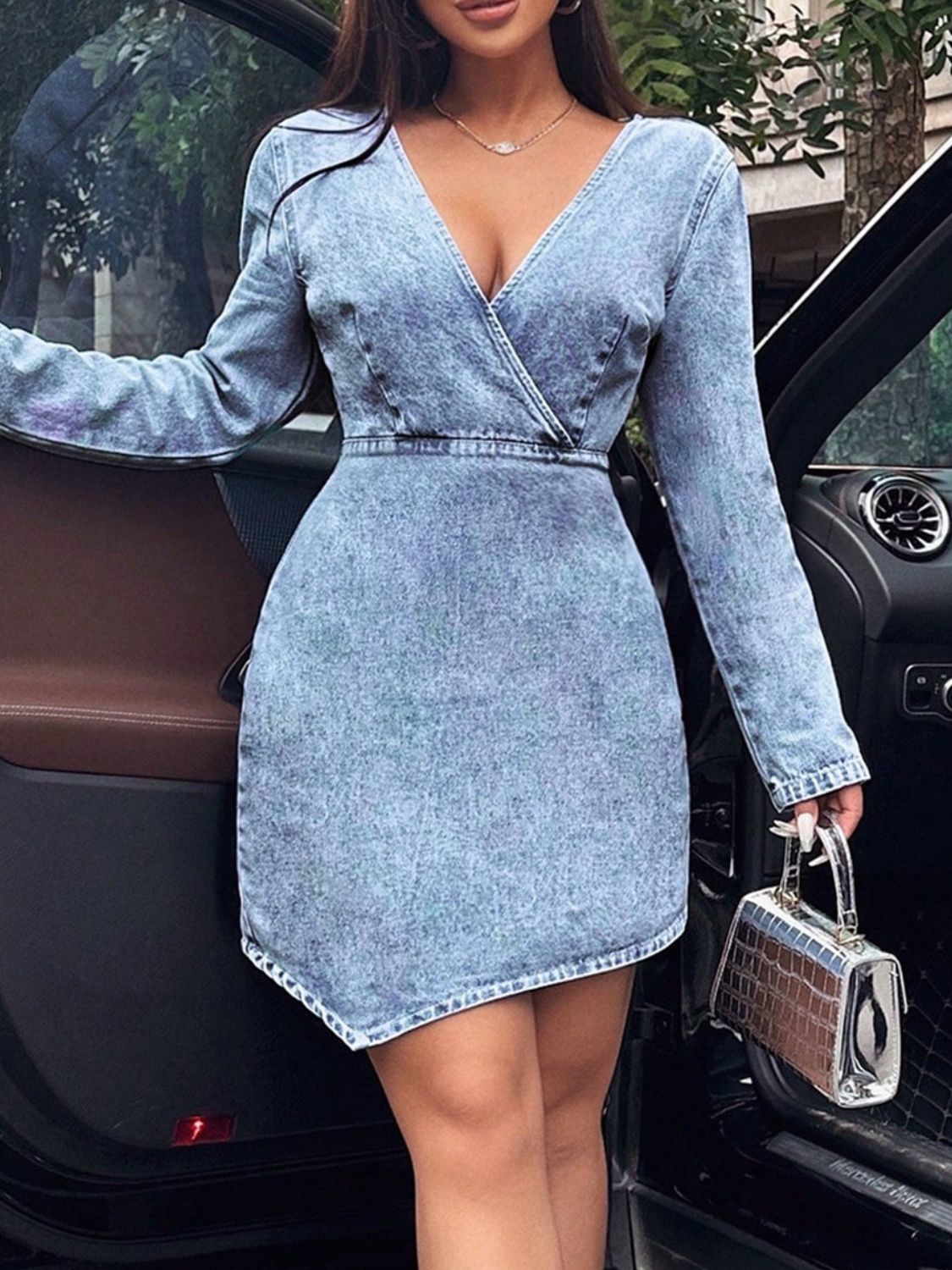 Surplice Long Sleeve Denim Dress
